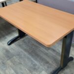 Plan de travail 120×66 STEELCASE plateau mélaminé poirier – piètement à dégagement latéral – Possibilité de 6 plans de travail 140×66 – convient aussi pour une salle de réunion