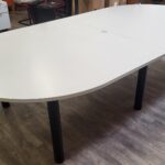 Demander un devisTable de réunion oblongue 300×150 MBA mélaminé gris ép25mm – 6 pieds tube diam.80mm – Montage en 2 parties 150×150 – convient pour réunion de 8 à 10 personnes – occasion