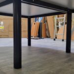 Table de réunion oblongue 300×150 MBA mélaminé gris ép25mm – 6 pieds tube diam.80mm – Montage en 2 parties 150×150 – convient pour réunion de 8 à 10 personnes – occasion