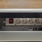 Demander un devisPlan de travail 180×80 plateau acacia foncé – pied arche anthracite – avec voile de fond – top access 3 prises + 2 RJ45 – reconditionné